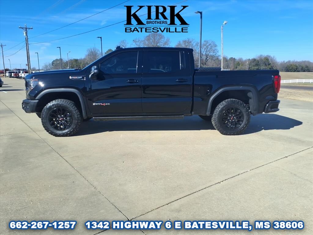 2023 GMC Sierra 1500 AT4X 4WD â" V8 6.2L Gasoline. Located in Batesville, MS, this rugged AT4X delivers premium off-road capability with refined comfort and a powerful V8 heart. Equipped with the 6.2L gasoline V8, the GMC Sierra provides confident towing and passing power, paired with a capable four-wheel-drive system and an Off-Road Package designed for challenging terrain. The AT4X trim adds performance suspension, skid protection, and upgraded tires to tackle trails without sacrificing on-road smoothness. Inside, enjoy modern connectivity and convenience features including XM Radio for endless entertainment and Hands-Free Bluetooth for seamless phone and audio integration. Adaptive Cruise Control enhances highway driving with intelligent distance-keeping and reduced driver fatigue. Cold mornings are no problem thanks to a Heated Steering Wheel that adds luxury to every drive. This GMC Sierra 1500 balances robust capability with thoughtful technology and comfort, making it ideal for work, weekend adventures, or daily driving. The vehicle is currently located in Batesville, MS and is offered at the best price in the area â" a competitive value for buyers seeking performance, comfort, and off-road readiness. Schedule a test drive to experience the 6.2L V8 power and AT4X capability firsthand and secure this top-value GMC Sierra today.