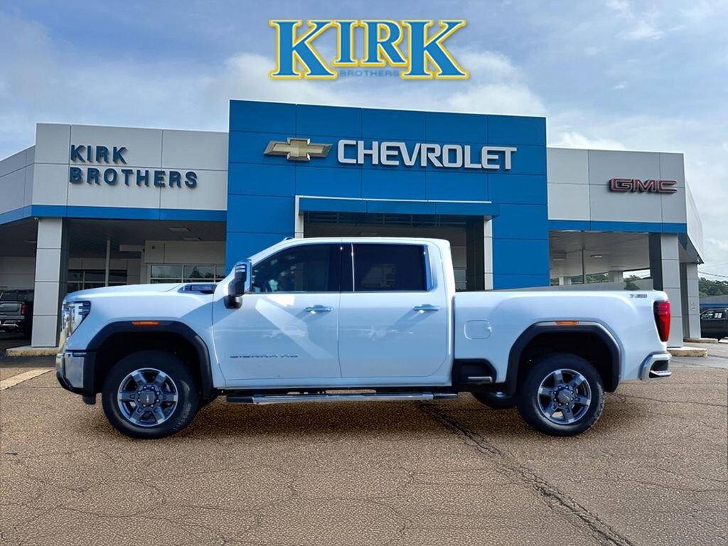 Low-mileage 2025 GMC Sierra 2500 SLT 6.6L V8, 4WD, Off-Road Package. Located in Grenada, MS, this powerful work-and-play truck offers the capability you need and the comfort you want, with only 5,200 miles on the odometer and the best price in the area. Under the hood, the 6.6L gasoline V8 delivers robust towing and hauling performance, paired with four-wheel drive for confidence on rough terrain or wet roads. The Off-Road Package adds suspension and protective features designed for tougher trails without sacrificing on-road refinement. Inside, premium features elevate every drive: BOSE stereo for rich audio, XM Radio for endless entertainment, steering wheel audio controls for convenience, and hands-free Bluetooth for safe phone use. The SLT trim balances upscale touches with durable materials suited to heavy-duty use. You'll appreciate the truck's low mileage, recent model year advantages, and strong resale potential. Whether you need a dependable workhorse for towing and hauling or a comfortable daily driver with rugged capability, this GMC Sierra 2500 SLT fits the bill. Priced to sell quickly in Grenada, MS don't miss the opportunity to own a high-performance, low-mileage 2025 GMC Sierra with the best price available. Contact us to schedule a test drive today.